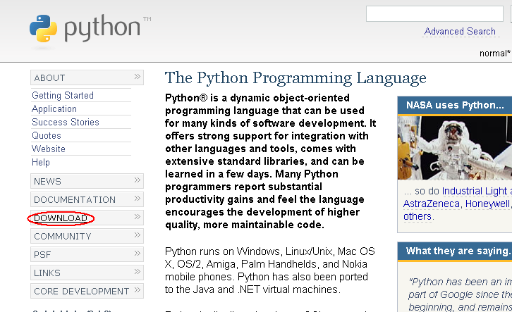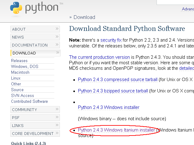 ここで注意してほしいのは、http://www.python.com/にいきますと、アダルトサイトに行ってしまうことです。少しビツクリしました。http://www.python.org/が正しい記述です。上記リンクからPython2.4のパッケージをダウンロードすればいるものはNotepadぐらいのもんです。Notepadはいわゆるメモ帳というやつです。